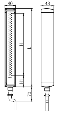 H:保護高度, L:傳感器高度,L:傳感器高度,H1=50mm,第一束光與下端蓋距離