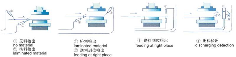 在沖床自動沖壓加工過程中,預防模具損壞和不良品的產生。具有擠料(波動)檢出、無料(材料末端)檢出,送料到位檢出、出料檢出等多種監測功能。